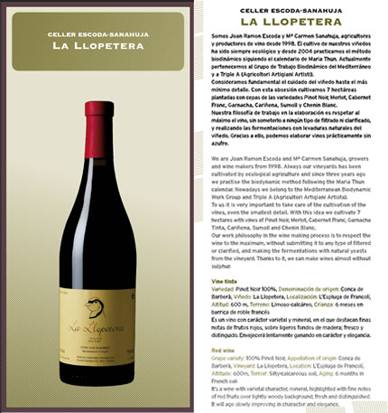 Concepció, redacció i disseny de fitxes de vins, amb la creació de notes de tast
